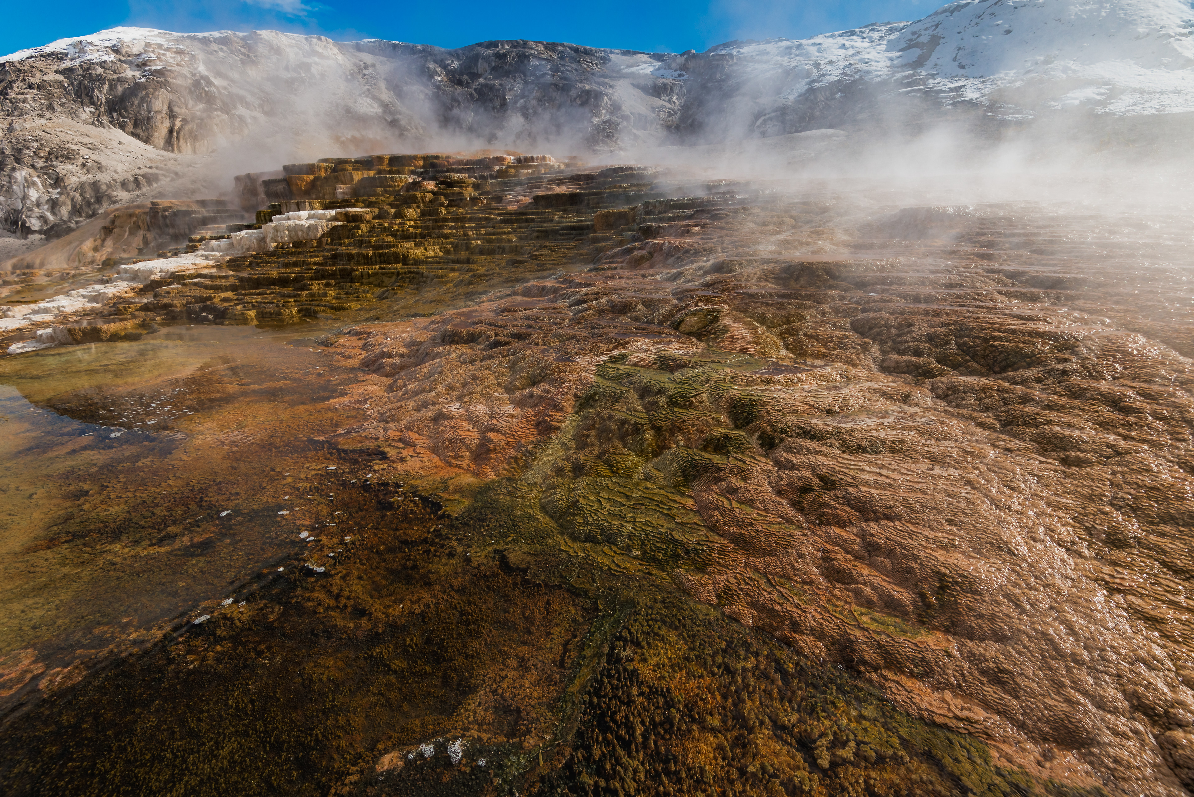 An otherworldly landscape - geysers, hot springs and travertine terraces